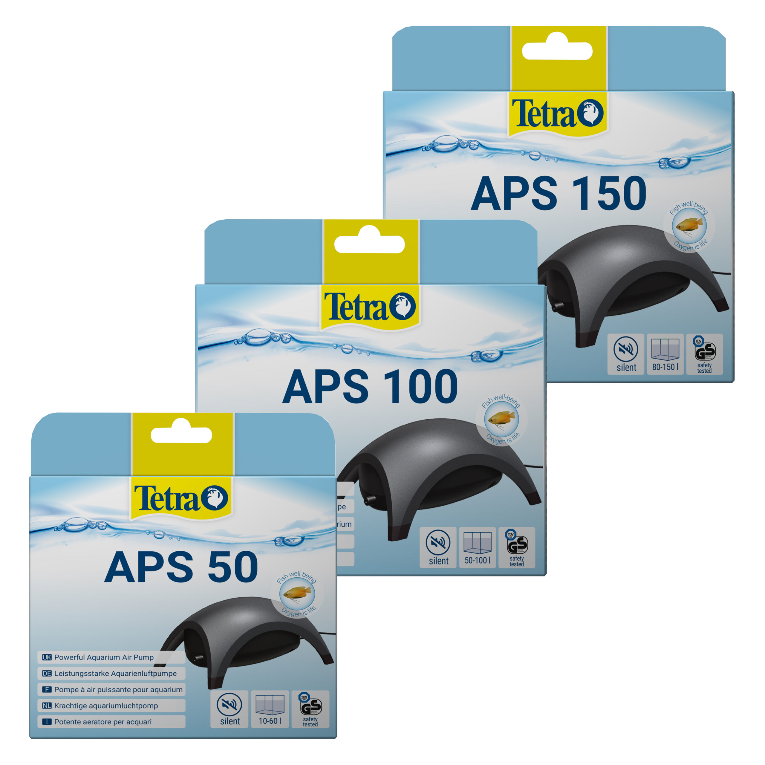 Tetrine APS vazdušne pumpe pouzdano snabdevaju akvarijum i ribice kiseonikom. Mogu se koristiti i za pokretanje vode kroz filter. Veoma su efikasne i kod dubokih akvarijuma. APS serija vazdušnih pumpi poznate firme Tetra je osmišljena sa idejom da se napravi proizvod koji će mnogo godina zadržati karakteristike nove pumpe, biti veoma tih u toku rada, i sa velikom pouzdanošću snabdevati akvarijum vazduhom. Vazdušne pumpe su deo tehničke opreme koji je izložen velikom naporu, imaju dosta pokretnih delova i greju se tokom rada. Pumpe lošijeg kvaliteta koje su u početku dobro radile, ubrzo počinju da zuje i lupaju. Količina vazduha koju dostavljaju opada i čitav akvarijum može biti ugrožen u slučaju potpunog prestanka rada. Tetrine APS pumpe izrađene su od vrhunskih materijala, što ih čini veoma dugotrajnim. Tokom dizajniranja vazdušnih pumpi posebna pažnja posvećena je bešumnom radu, čitava pumpa je postavljena na 4 gumene noge koje dodatno apsorbuju sve vibracije koje mogu nastati tokom rada. Sama pumpa je veoma tiha jer ima komore koje absorbuju zvuk. Kod dubokih akvarijuma ne gube snagu i sa lakoćom savladavaju pritisak vodenog stuba. Kao i ostali Tetrini proizvodi, vazdušne pumpe su veoma kvalitetne, sa inovativnom tehnologijom kojom odskaču od konkurencije. Veoma brzo su se izborile za status najkvalitetnije vazdušne pumpe na tržištu. Količina vazduha koju dostavljaju akvarijumu u toku sat vremena predstavljen je brojem pored naziva serije (APS 50 daje 50 litara vazduha za sat vremena). Protok se veoma jednostavno može regulisati pomoću ventila koji se isporučuje zajedno sa pumpom. Kada se APS vazdušne pumpe postavljaju na mesto koje je niže od akvarijuma preporučujemo upotrebu Tetra nepovratnog ventila. Modeli APS 300 i APS 400 imaju dva izlaza. Garantni rok na vazdušne pumpe je 2 godine. Originalni rezervni delovi i servis su obezbeđeni i po isteku garantnog roka. Kod nas možete kupiti i svu ostalu dodatnu opremu za vazdušne pumpe, različite tipove raspršivača, vazdušne zavese, regulatore i nepovratne ventile, kao i silikonsko crevo za vazduh. Tetrine vazdušne pumpe podjednako su pogodne za slatkovodne i morske akvarijume.